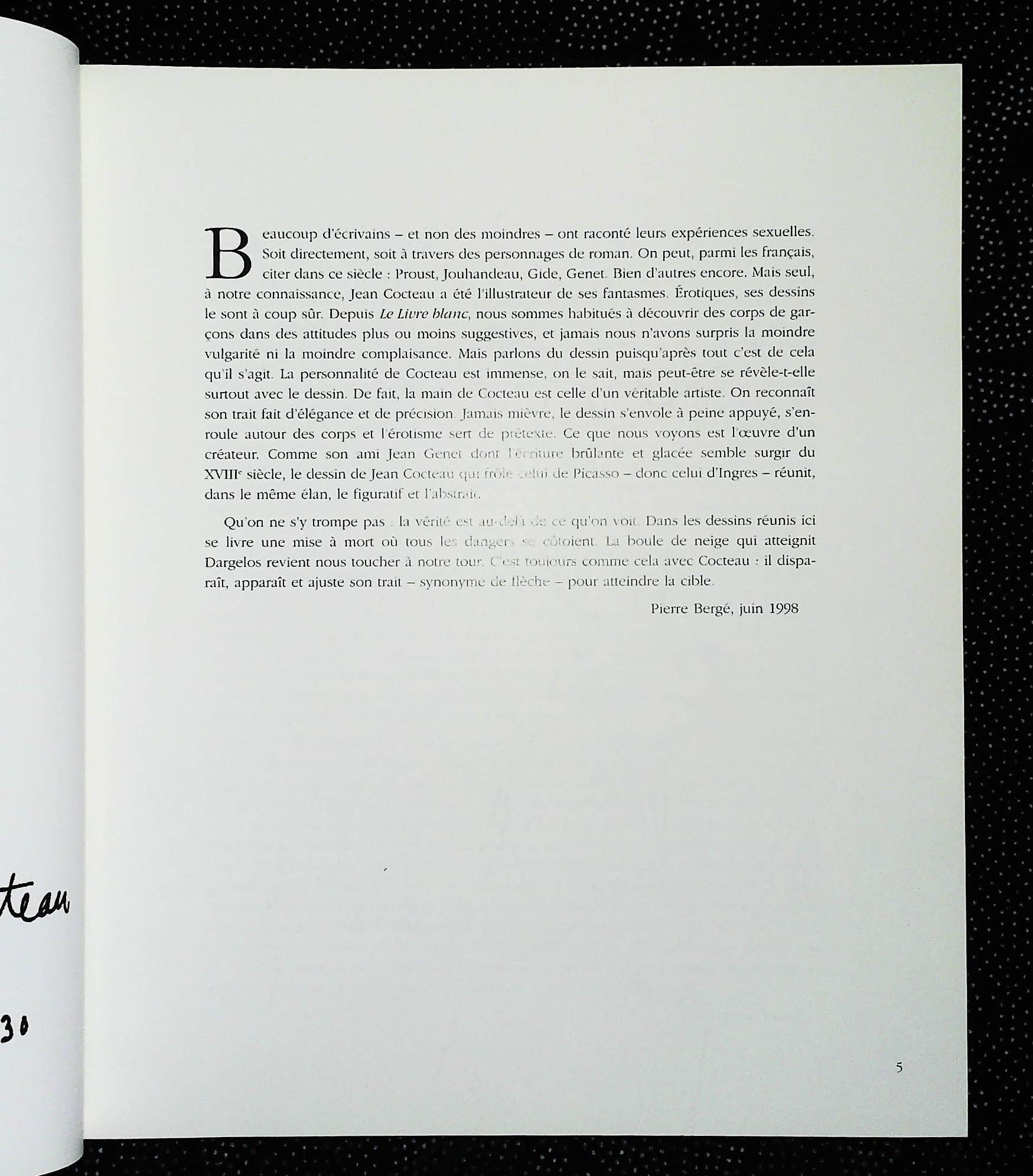Très beau livre de dessins érotiques de Jean Cocteau avec une préface de Pierre Bergé. Le soin apporté à l'impression et à la reliure en font un livre d'exception à l'intention d'un public averti. Etat neuf.