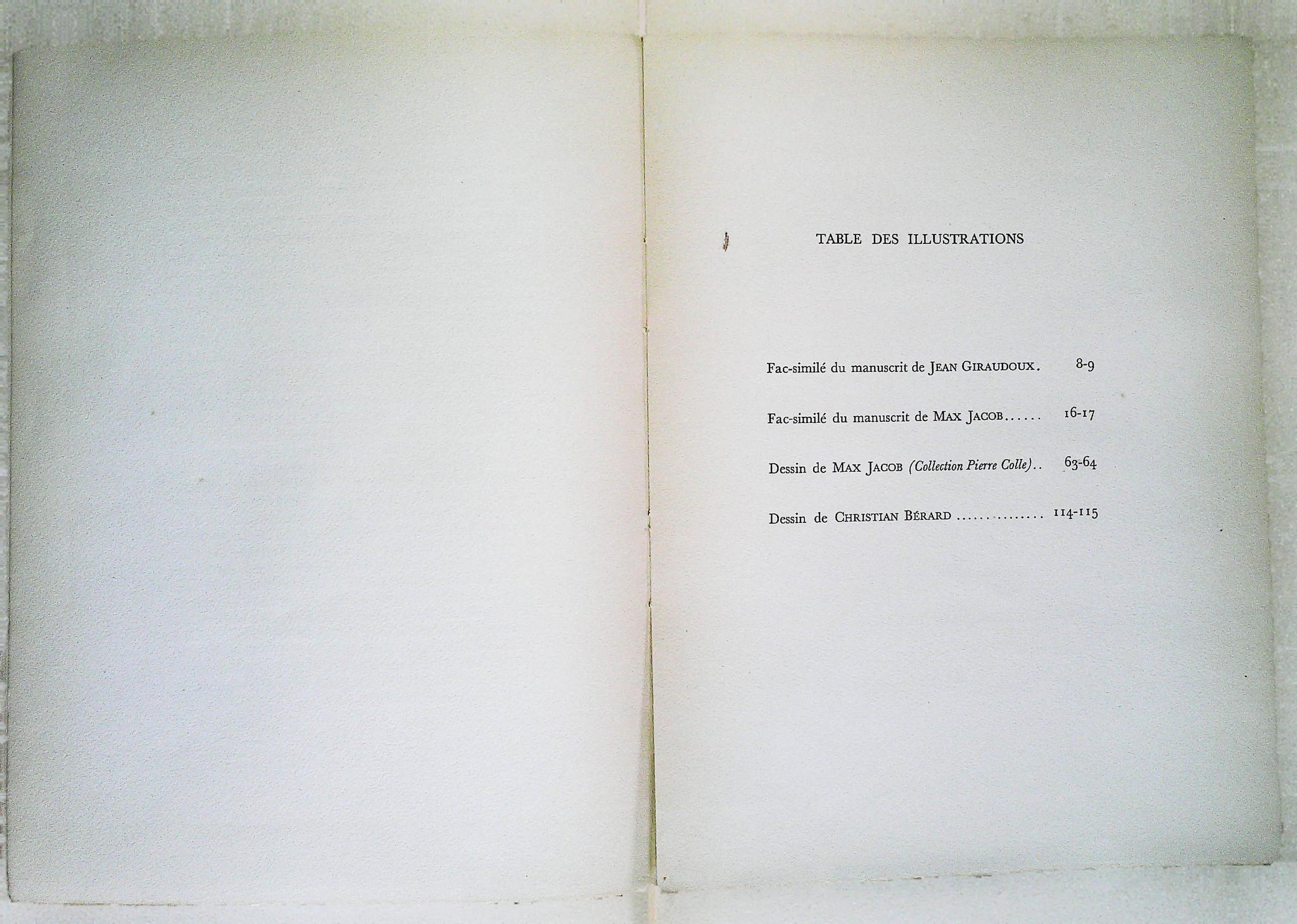 Fac-similé des manuscrits de Jean Giraudoux et de Max Jacob, des dessins de Max Jacob et Christian Bérard.